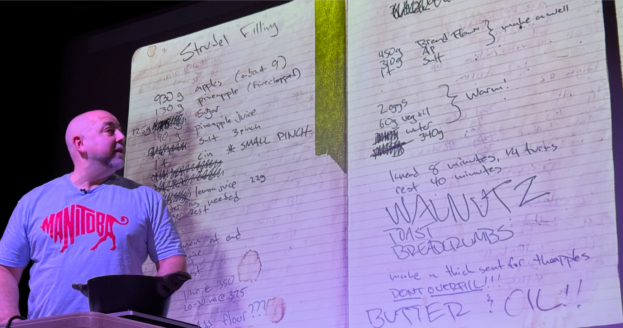 We also were able to get tickets to see Chef Duff Goldman, who's been on the Food Network for a long time, initially with his show, Ace of Cakes, talk about his life and make us his family's apple strudel.