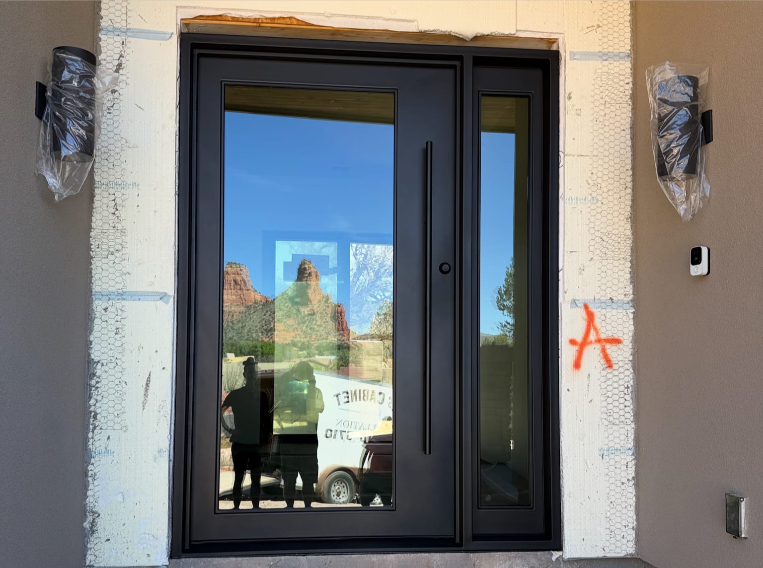 We had our hot tub, purchased last summer, finally delivered. And now we have a front door!